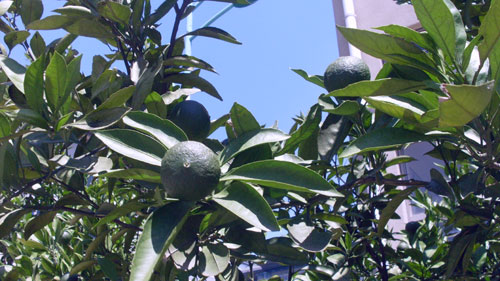 Thanks to the hard work by all our staffs , the orange trees fruited well.