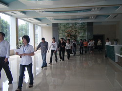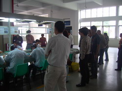32 members divided into two group from VOLT COMPANY paid a visit to our company on June 3.2009,group I was guided by vice general manager Yi to visit dormitory,dining room,technology building,wharehouse,and group II was guided by vice general manager Ding to visit production line and wharehouse.