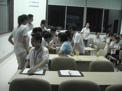 On the evening of July 16, the managers of thchnology and production department give a training course to reinforcement class which mainly concerns to important technology¡¢product table and labeling training. The representatives of thchnology department and production department have a debate in a active atmopphere, it is mainly about quality and quantity. They organize a small game after the course, group leaders told their own thought eagerly.