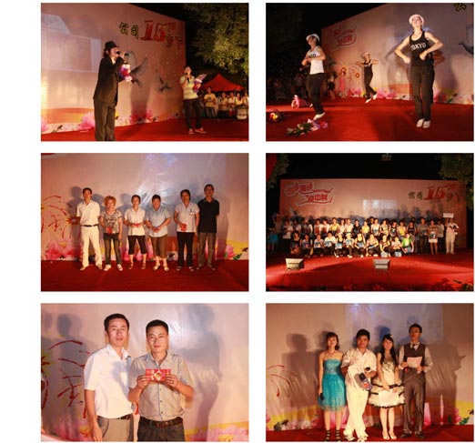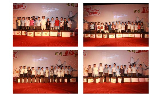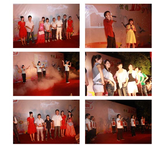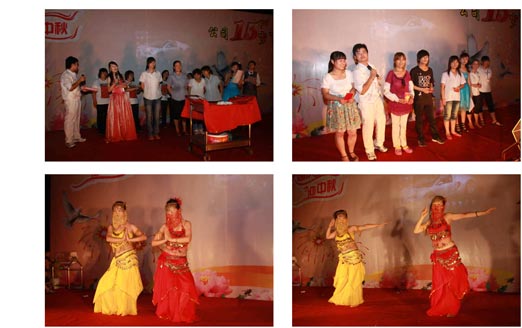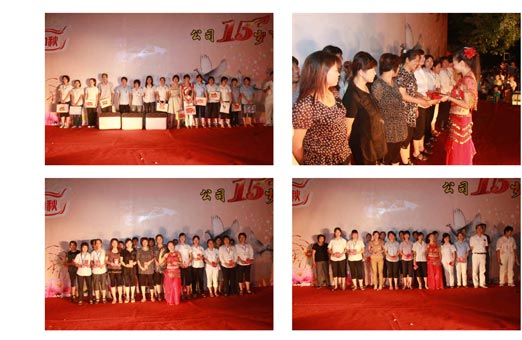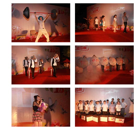 Our company held the evening party of Mid-Autumn & National day & Sunlit 15 years Anniversary on 21st Sep. 2010. The theme of the party was: interaction, innovation and surprise. To celebrate our company¡¯s 15 years¡¯ anniversary, 15 prizes were implemented. The gift is RMB 1000 Yuan credit voucher. Except the performance, there were also some little games like knowledge contest,brain teaser, look-alike contest, movement dargon and ture & false judgement. The staffs who have worked for 8 , 9 and 10 years or above were awarded for the gift and bonus. In the end of the party, the managers from each department and the vice-general managers selected one programme which in conformity with the theme of the party. The actor was given away RMB 1000 Yuan credit voucher. The party came to an end in an pleasant atmosphere.