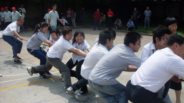舜和员工参加镇政府举办"迎奥运,树新风"运动会,参与人员表现积极,展示了舜和员工良好的团队协作精神与勇于挑战的精神.