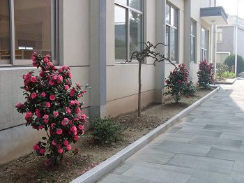 公司里种了很多花果树,到了每年的春天所有的花果树的花儿都争相开放。今天的杏树开了许多粉白色的花儿,茶花树开满了红艳艳的花儿,使我们大家感受到了春天的气息.