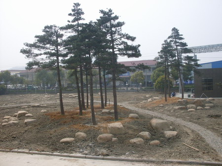 2009年3月初门卫右边的花园开始建造,到目前为止花园里已经栽种了数十棵的松树,十字形的小路也基本成形。相信不用再过多久,就可以看到完整的花园呈现在大家眼前。