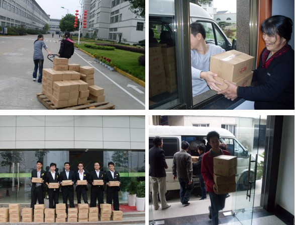 在大家的精心呵护下,公司果园里的桔子、柿子熟了,也可以丰收了。感谢大家共同爱护,10月20日公司为每位员工发放桔子一箱,其中包括:“浙江舜力特塑料制品有限公司”、“百年春国际娱乐会所”、“上虞舜和照明电器有限公司”、“上虞市徐陈电器塑料制品有限公司”,公司上下一片喜气洋洋的景象。