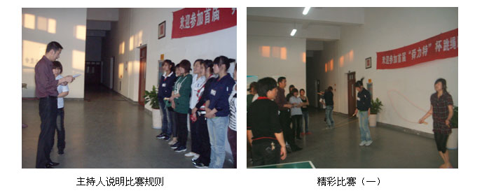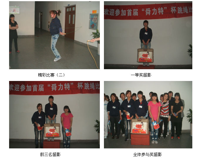 为了丰富员工业余生活,提高员工自身体质,从4月份起企管部组织每月2次员工比赛活动。4月30日企管部组织了“舜力特”杯跳绳比赛,通过参赛选手们紧张、激烈的比拼,最后决出本届比赛的前三名选手,发放奖品表示祝贺,并为所有参赛者发放纪念奖表示鼓励!