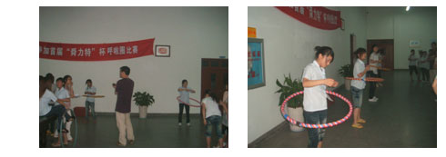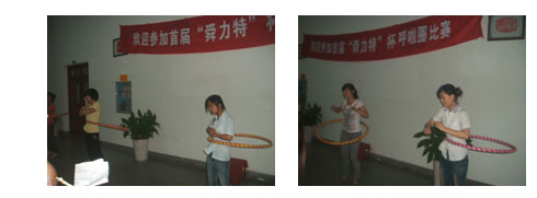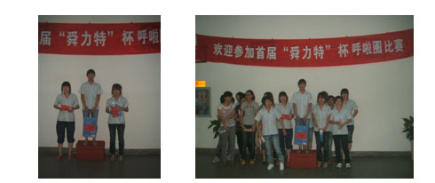 为了丰富员工业余生活,提高员工自身体质,从4月份起企管部组织每月2次员工比赛活动。6月11日企管部组织了“舜力特”杯呼啦圈比赛,通过参赛选手们紧张、激烈的比拼,最后决出本届比赛的前三名选手,发放奖品表示祝贺,并为所有参赛者发放纪念奖表示鼓励!