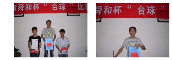 为了丰富员工业余生活,提高员工自身体质,从4月份起企管部组织每月2次员工比赛活动。7月29日企管部组织了“舜和”杯台球比赛,通过参赛选手们紧张、激烈的比拼,最后决出本届比赛的前三名选手,发放奖品表示祝贺,并为所有参赛者发放纪念奖表示鼓励!