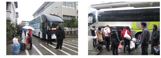 春节回家,一票难求,这是困惑外地员工多年的一块心病。为方便员工顺利返乡,免去他们通宵达旦排队购票之苦和扛着大包小包到处奔波之累,公司提前为员工预订了大巴车,从1月18日开始陆续免费送员工回家,解决员工过年回家的一件心头大事。