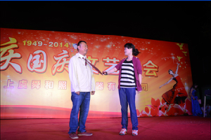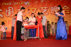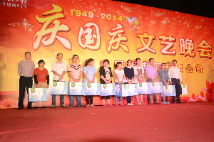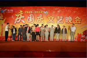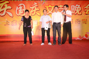 在9月20日我公司与上虞国华艺术团举行"庆国庆" 联合文艺晚会,金秋季节祝福祖国国泰民安,也祝福我们公司成立整整十九年了,与员工同庆,同时对公司8年以上不同年限的老员工分别颁奖,中间还穿插抽奖和员工互动,节目丰富多彩,晚会圆满成功。