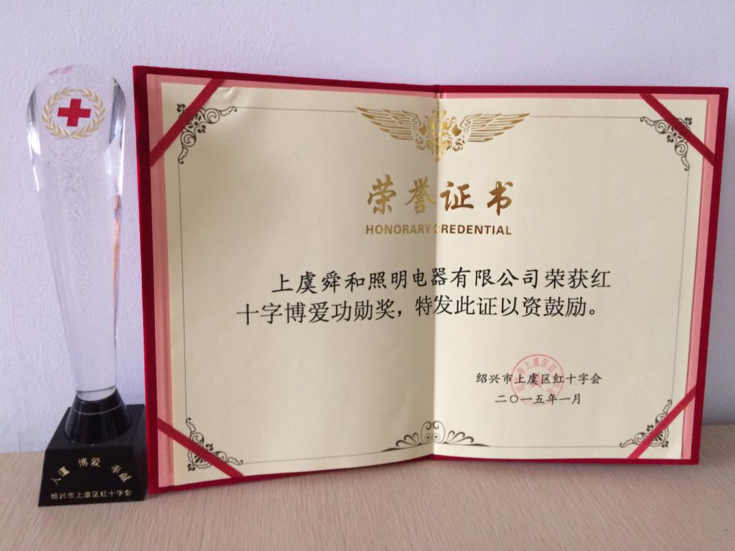 公司在2014年度先后向小越镇和丰惠镇教育事业捐赠共50万元,被绍兴市上虞区红十字会予以表彰,授予“红十字博爱功勋奖”。