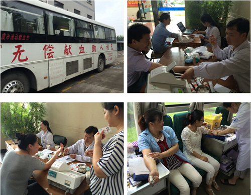 爱我中华,捐我热血。 人间自有真情在,献出鲜血播下爱。献血无损健康,救人功德无量。无偿献血,血浓情更浓。献出的血有限,献出的爱无限。 你血输在我身,你情深入我心。 献血献髓救人,生命之树常青…… 一年一次献血在我们公司展开,红十字献血车开进公司,员工们积极报名献血,大家无私奉献出一份爱心,利己利社会,值得我们大家学习。