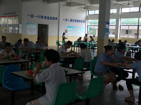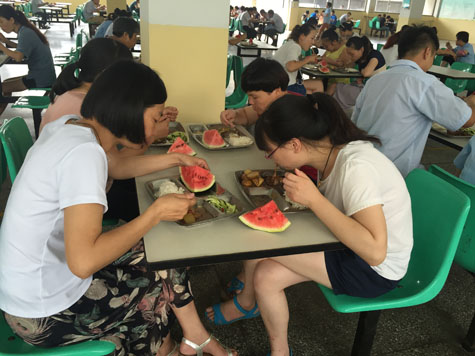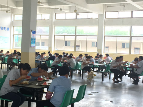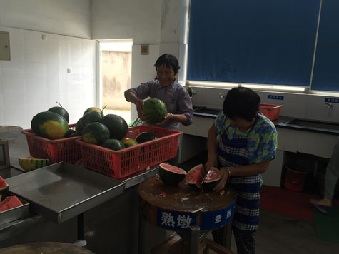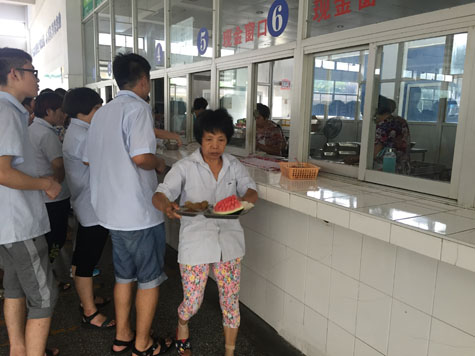 请全体员工分享劳动成果,品尝香甜可口的西瓜。