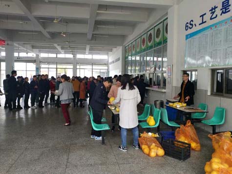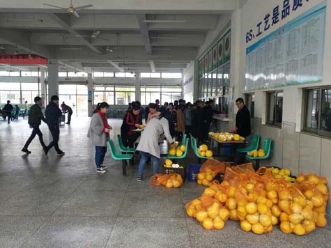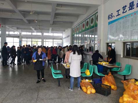 舜和员工福利发放现场(公司领导特意从广东买来香甜爽口的柚子)